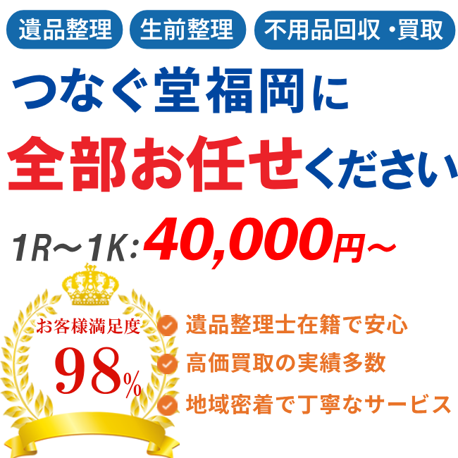 つなぐ堂福岡は福岡エリアで遺品整理・生前整理を専門に行う業者です。